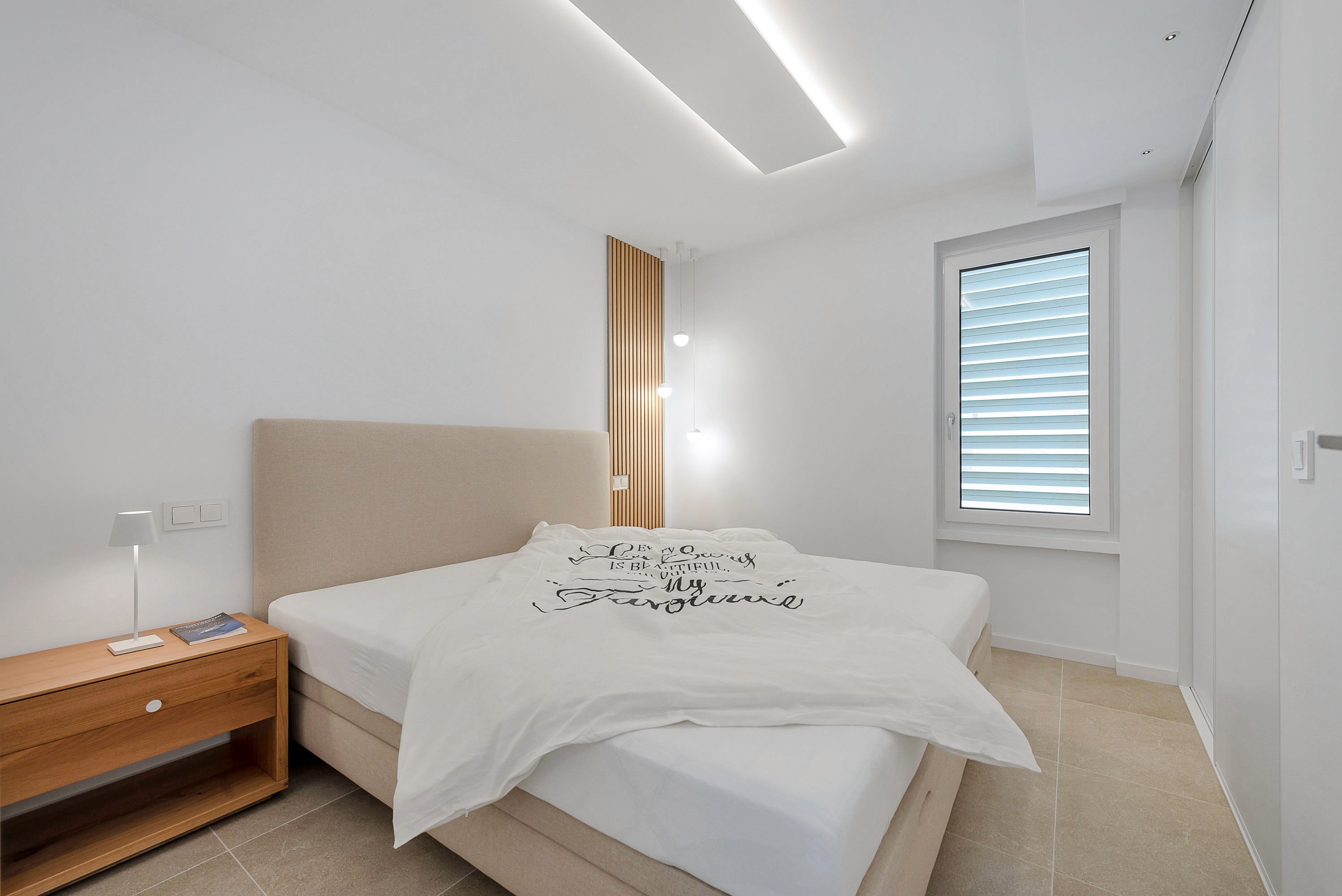 Die Renovierung wurde unter Verwendung von nur hochwertigen Materialien und Ausstattungen durchgeführt, die zeitgenössisches Design mit Komfort und Langlebigkeit kombinieren. Jedes Detail wurde sorgfältig berücksichtigt, um das natürliche Licht und die panoramicen Ausblicke des Apartments hervorzuheben, was zu einem stilvollen, funktionalen Zuhause am Meer führte.