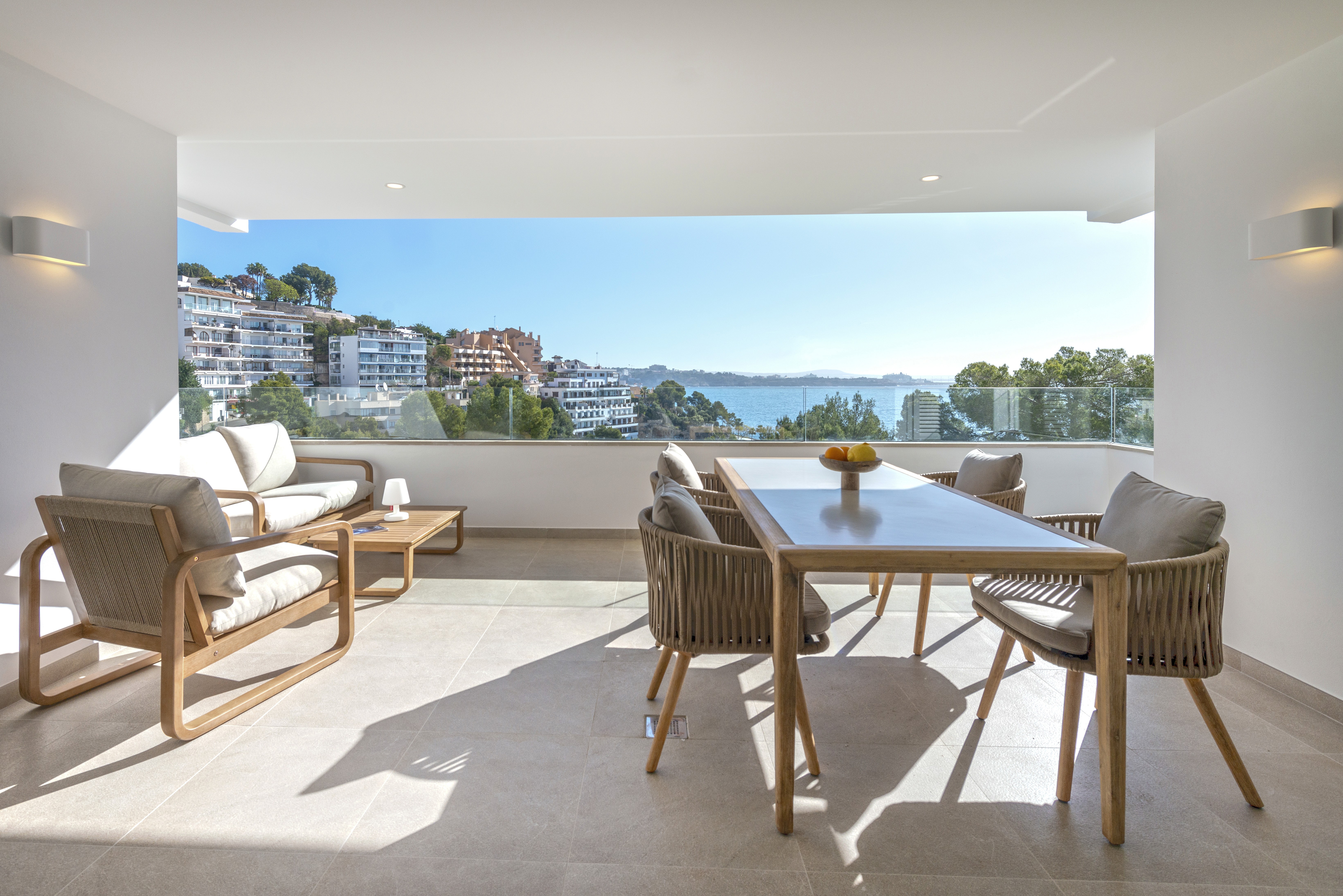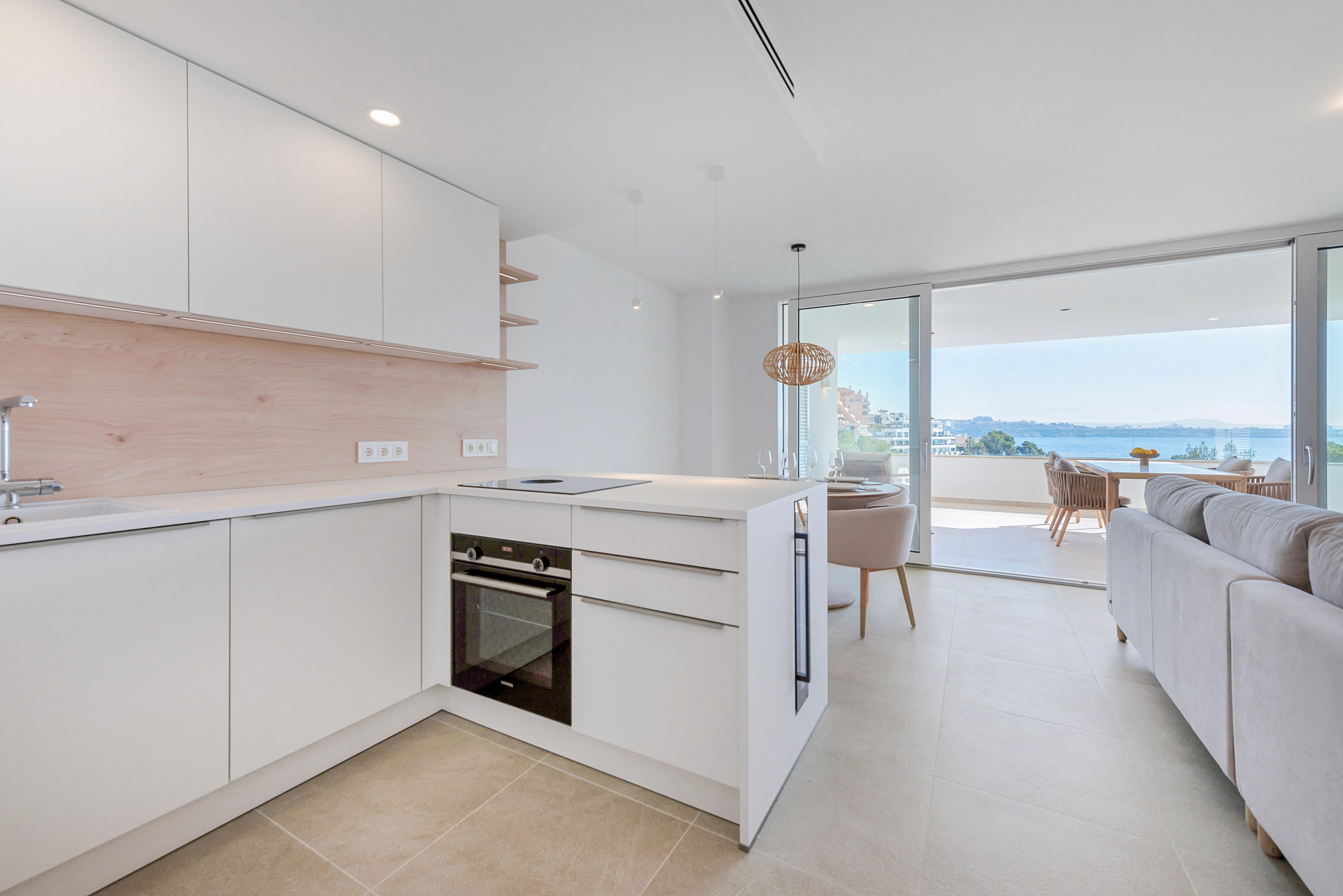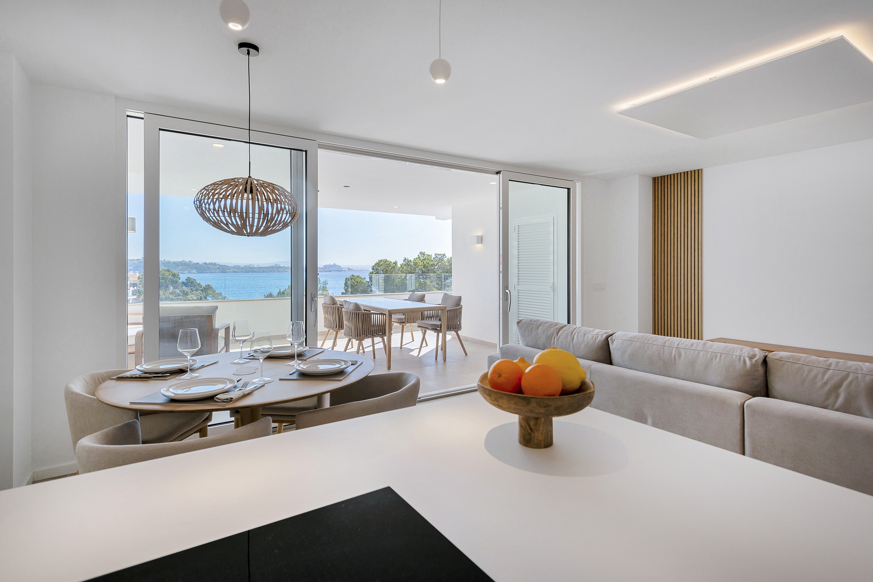 Eine vollständig renovierte Wohnung 2024 mit Panoramablick auf das Meer, modernen Ausstattungen und lichtdurchfluteter Küsteneleganz.