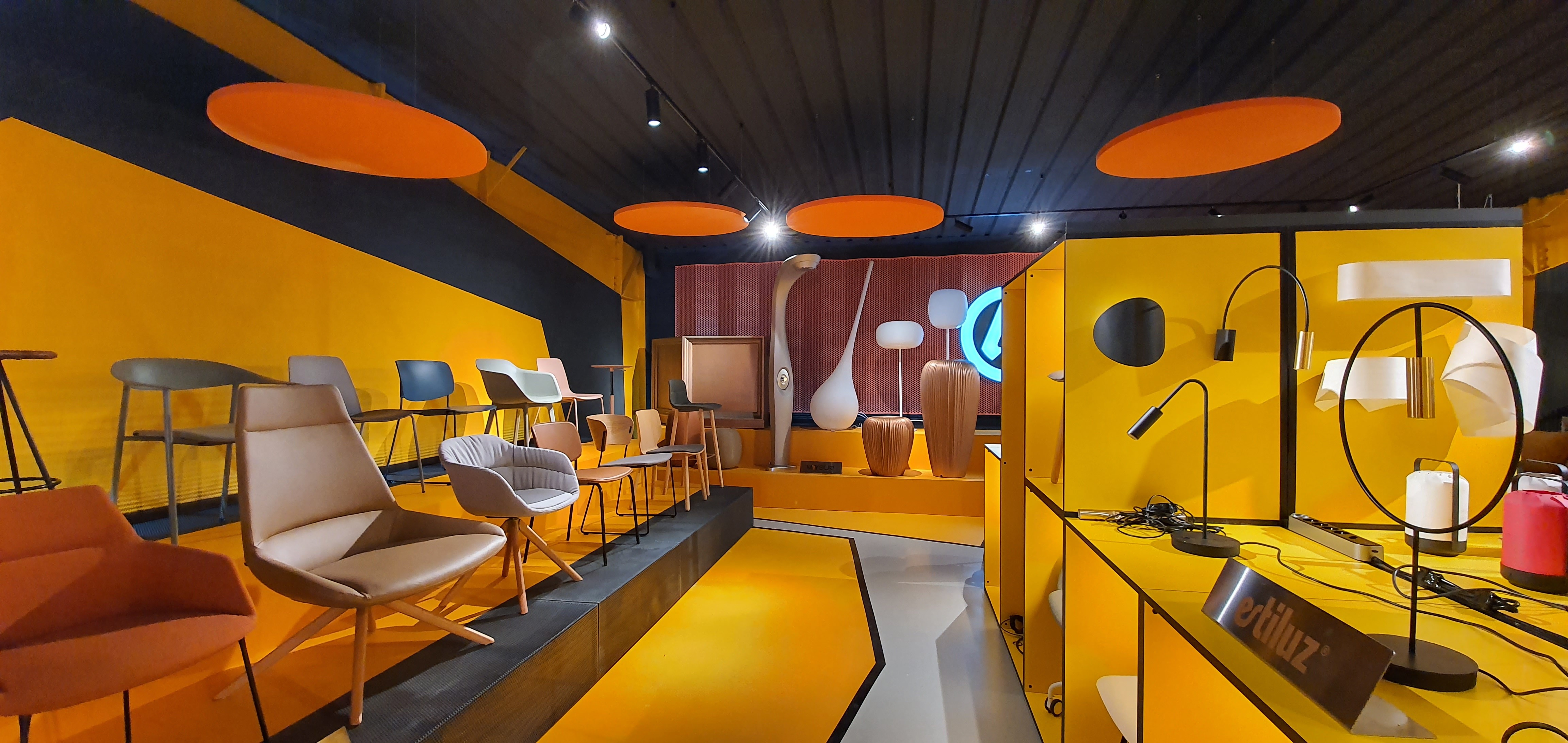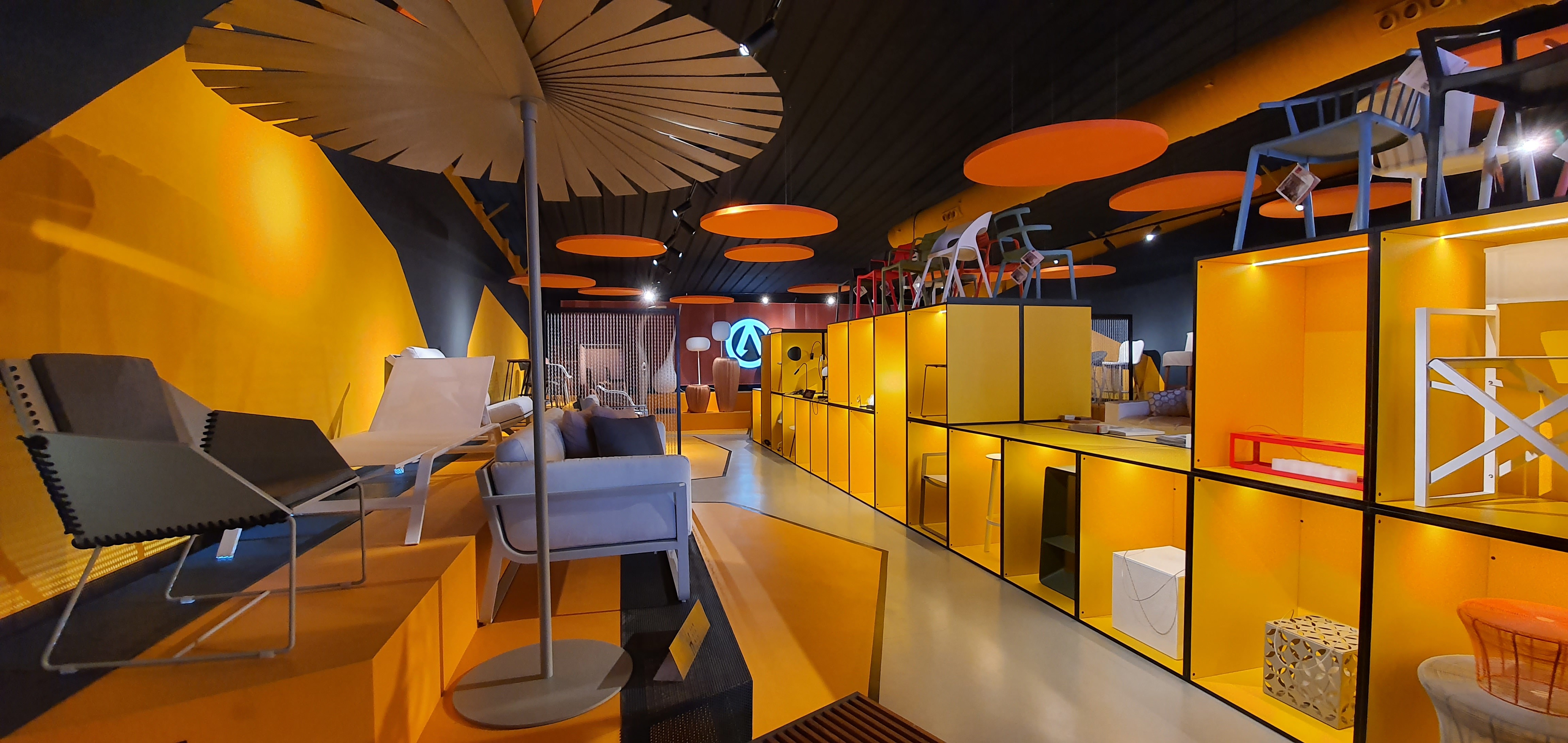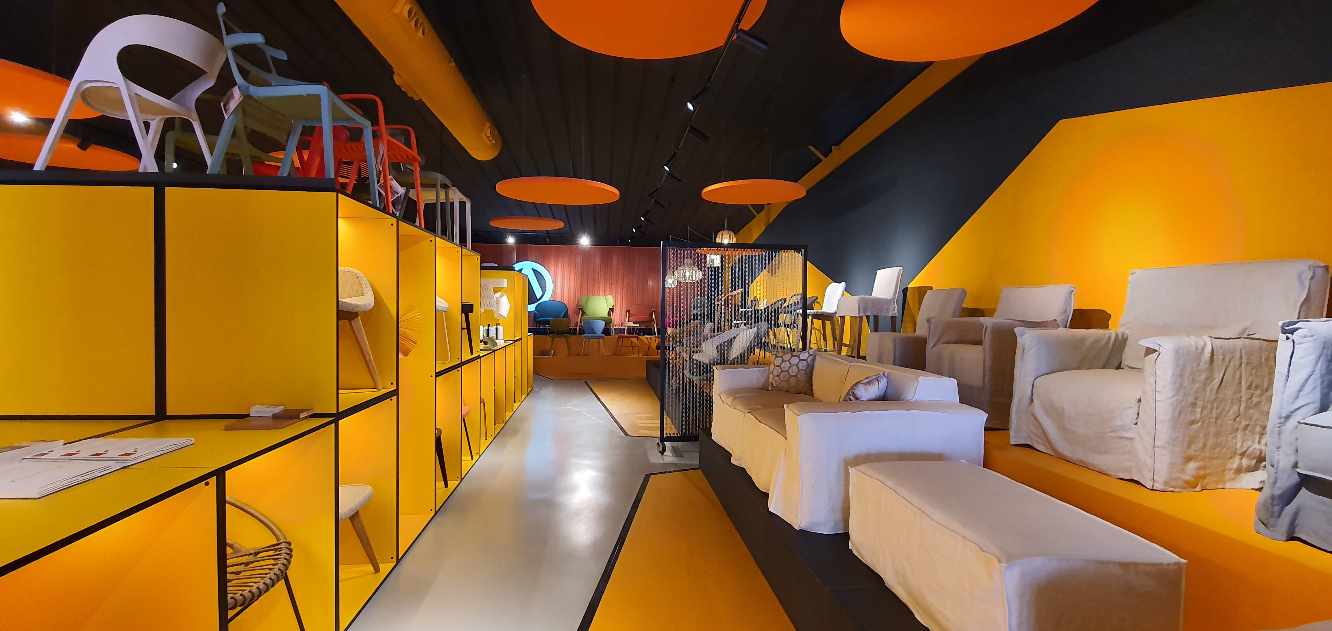Una transformación creativa de un antiguo espacio de almacenamiento en un showroom elegante y de alto impacto para colecciones de muebles premium.
