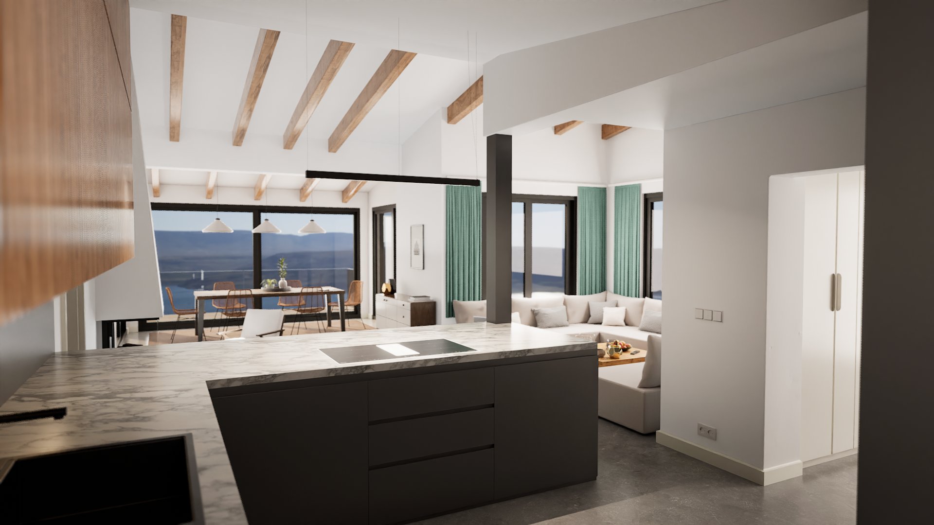 This modern home was built from the ground up, carefully combining contemporary features with rustic details to create a unique and harmonious design. Every aspect of the project was thoughtfully executed to balance modern living with timeless character.