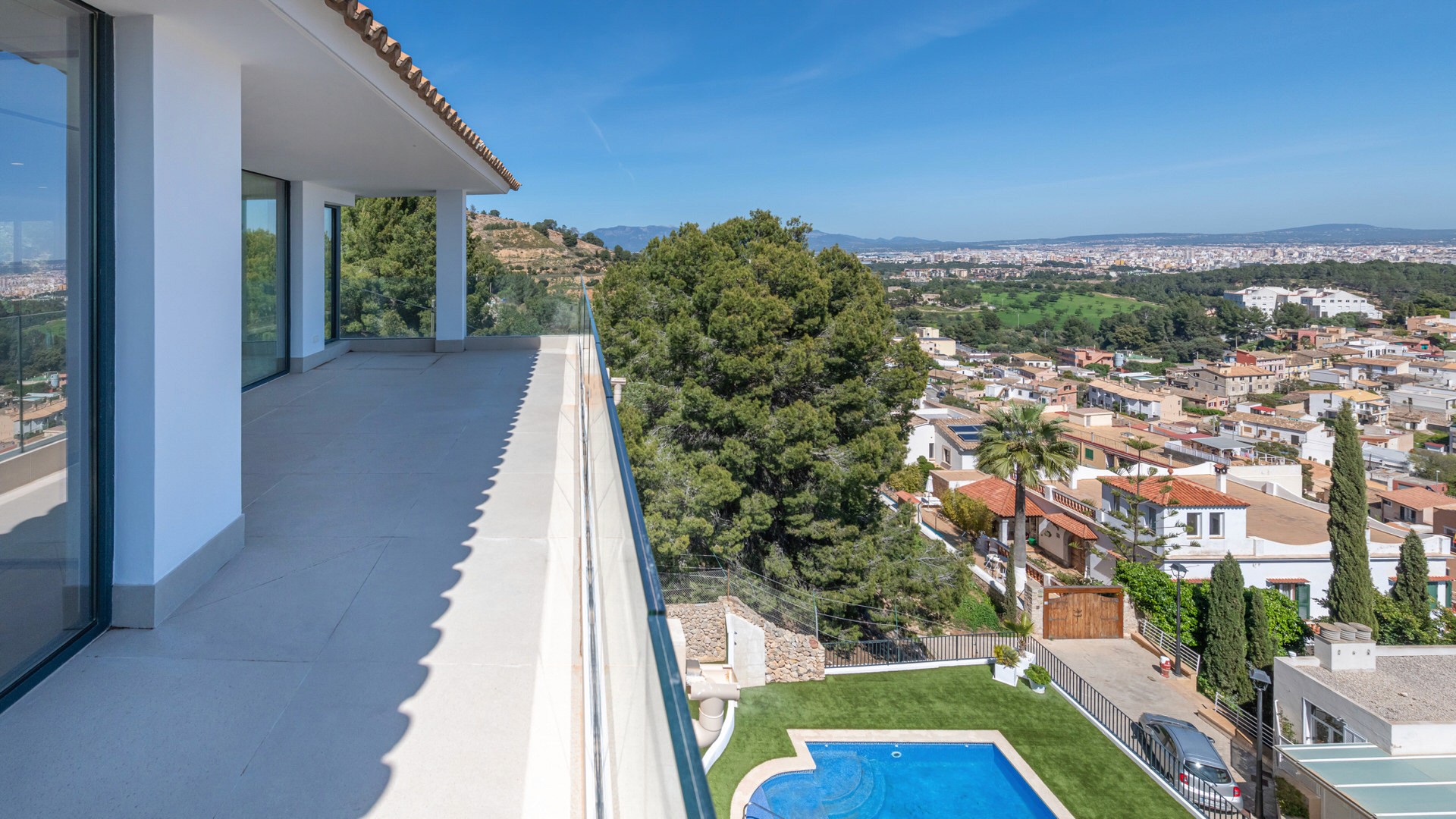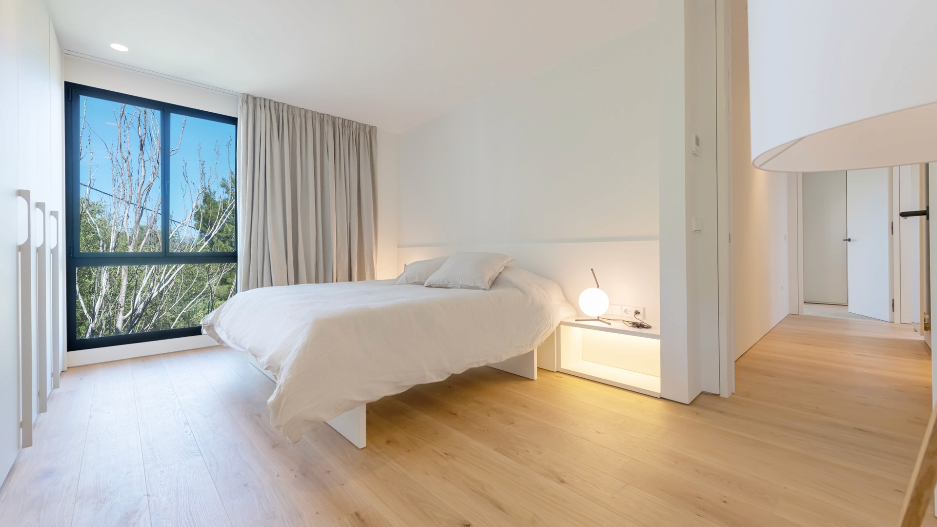 High, custom-crafted wooden doors that enhance the sense of space and luxury