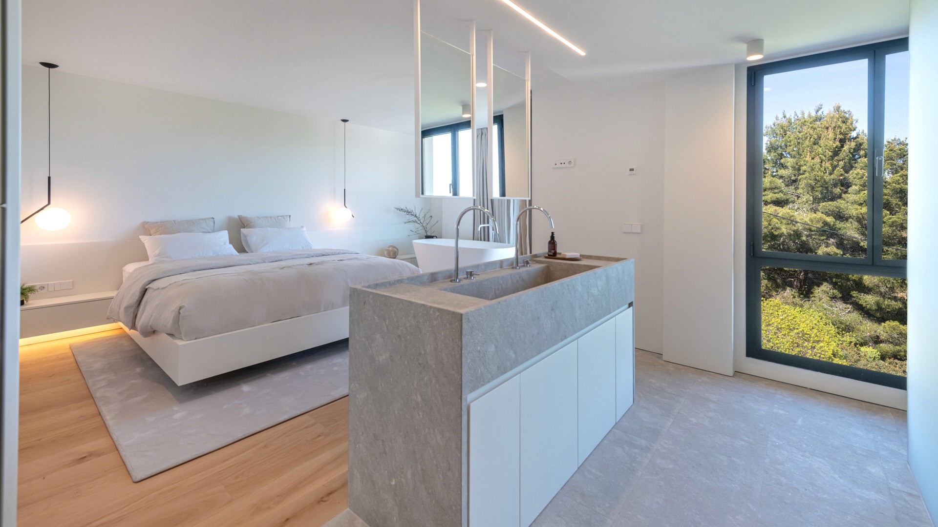 A refined penthouse featuring custom woodwork, natural stone finishes, and a unique blend of modern and timeless design.